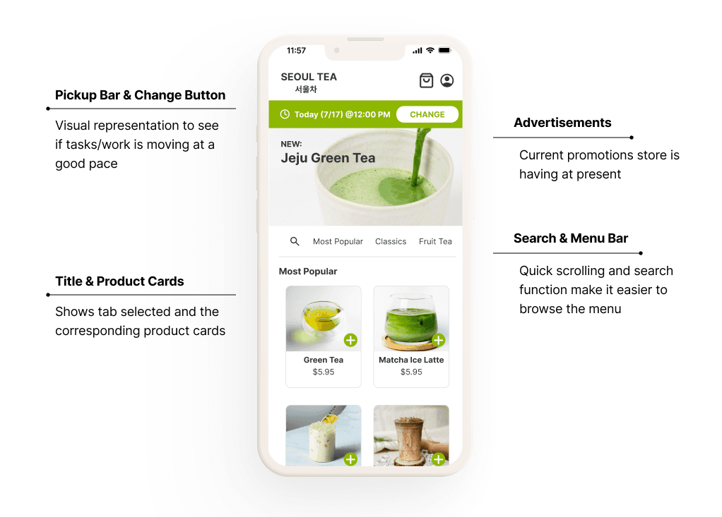 Seoul Tea is a tea shop that focuses on classic and blended teas from South Korea. The goal is to create a mobile ordering app with a user-friendly experience that is streamlined to allow for quick changes to the pick-up time.